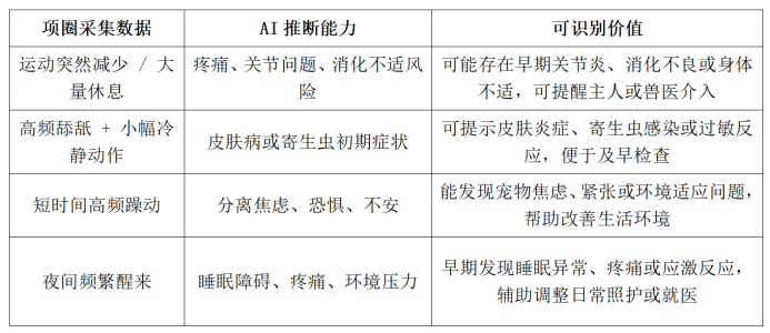 這意味著,智能項圈要想真正走向價值化,必須借助 寵物專用AI模型,對數(shù)據(jù)進行解釋、聯(lián)動與推演。