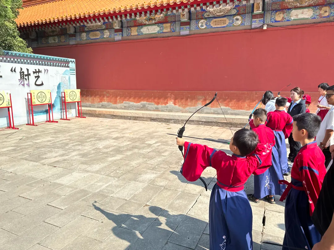 在射藝研學體驗現場,社教老師通過講授傳統射藝文化,指導學生掌握射箭整體姿勢、站姿、握弓手姿勢及拉弓等禮儀和基礎技術動作,使孩子們在學習實踐中繼承中華優秀傳統文化的同時也提升了文化自信。