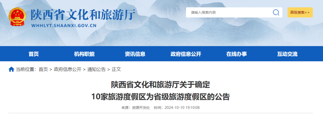 除此之外,陜西省文化和旅游廳發(fā)布關(guān)于確定10家旅游度假區(qū)為省級(jí)旅游度假區(qū)的公告,具體內(nèi)容如下↓↓↓