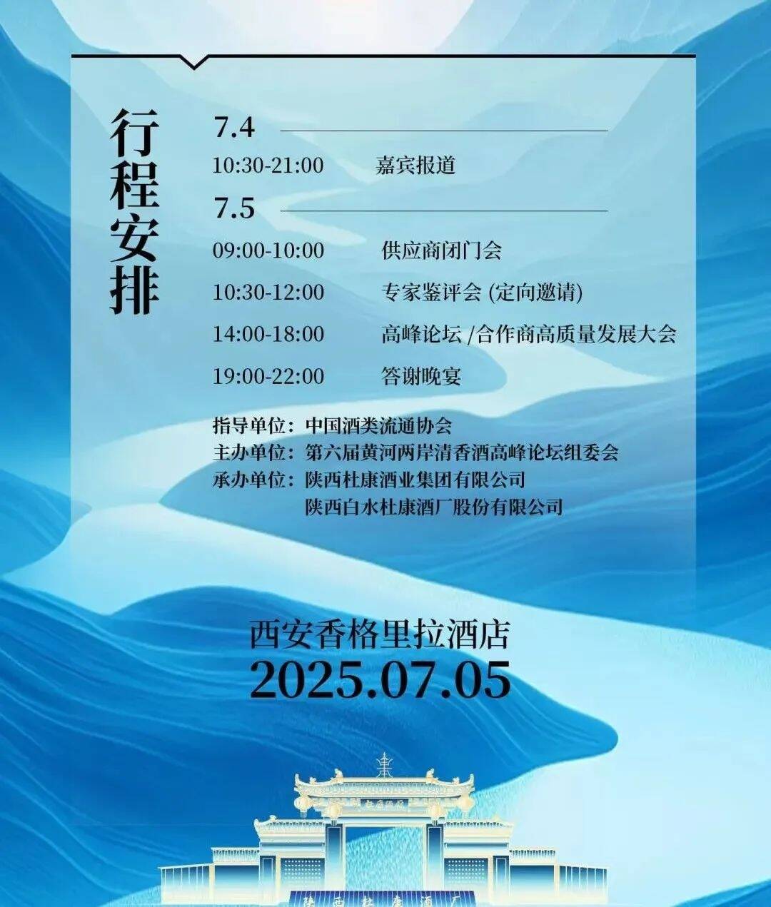 7月5日,第六屆黃河兩岸清香酒高峰論壇暨白水杜康2025年合作商高質量發展大會將在西安舉行。本屆論壇以“清香賦能·黃河振興”為主題,匯聚行業協會領導、釀酒專家、企業代表及經銷商精英,共同擘畫清香型白酒產業高質量發展新藍圖。