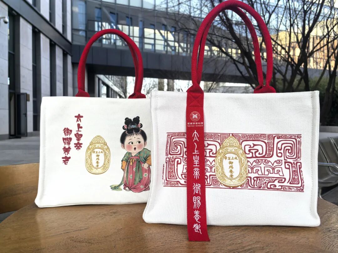 設計師將文物巧妙的轉化為托特包、Polo衫、冰箱貼等潮流單品,尤其是托特包融合獸面紋與銀牌元素,背面設計古裝萌娃俏皮凝視,這種時尚化表達契合了大眾“無壓力生活”的訴求,成功實現歷史IP的時尚破圈。
