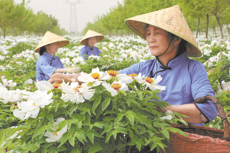 中資國業牡丹產業園內采摘忙。