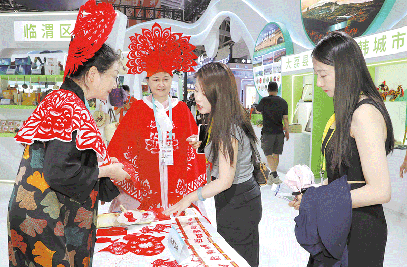 第九屆絲博會渭南文旅消費展區,臨渭剪紙吸睛。
