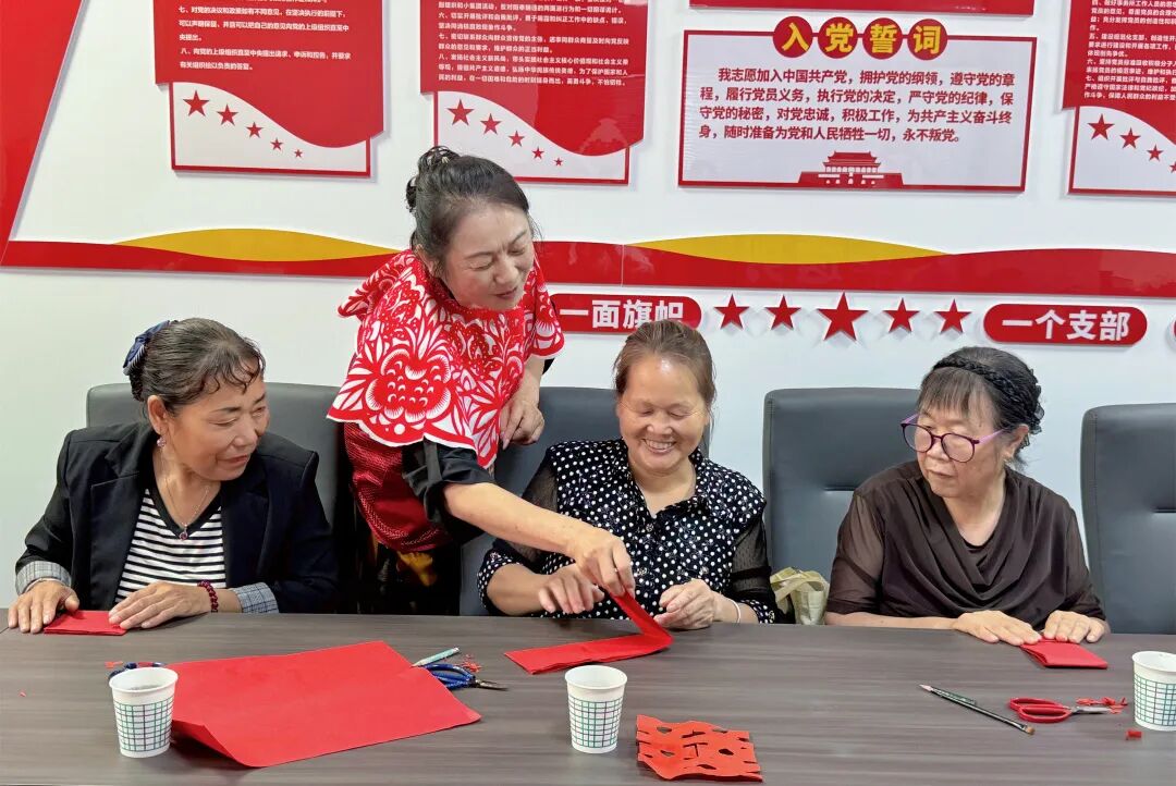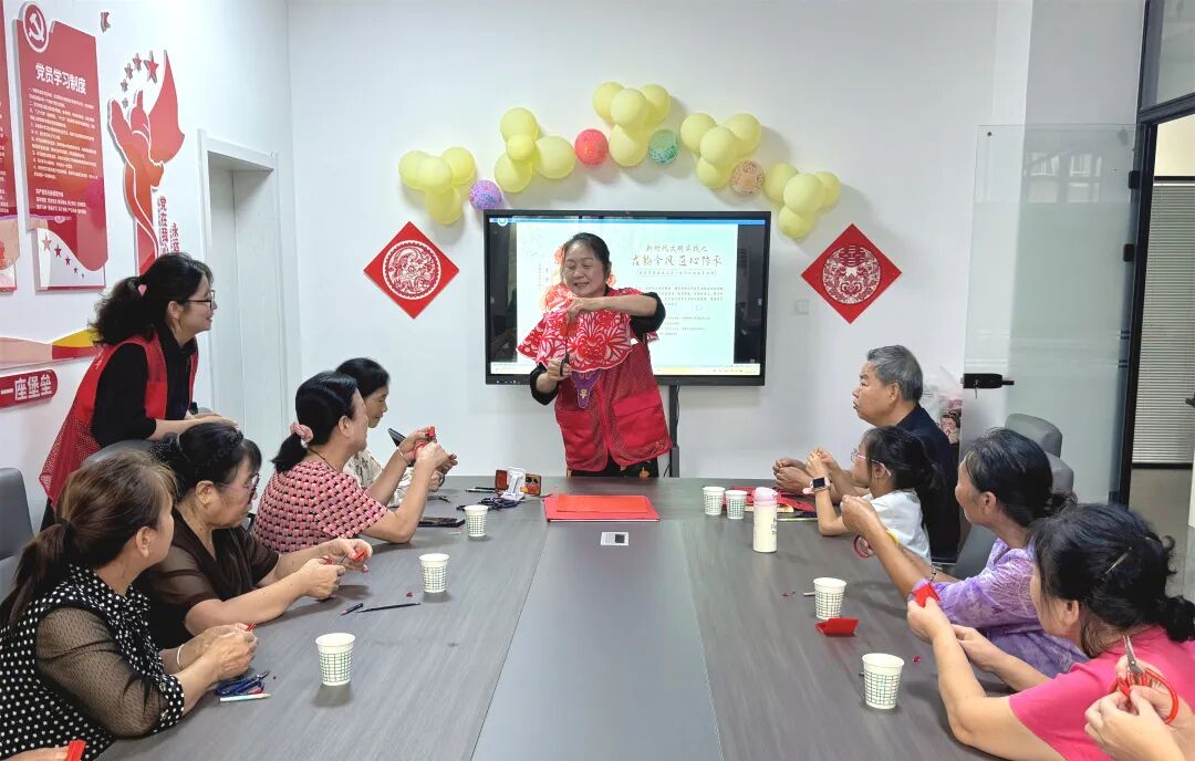 彩紙翻飛承古韻,指尖靈動剪深情。活動特別邀請非遺志愿者曹靜老師現場授課。課堂上,曹老師用通俗生動的語言,從剪紙千年的歷史底蘊講起,細致講解剪刀的剪法、剪紙的寓意,再以嫻熟的動作演示折紙運剪的技巧——多折折出對稱美,一剪剪出線條韻。紛飛的紙屑間,雙喜、祥云等圖案漸漸成形,精美的剪紙雛形吸引參與的居民們目不轉睛、連連贊嘆。