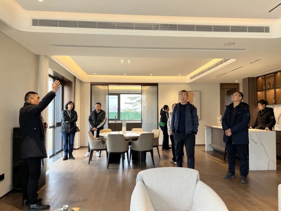 在上上地產營銷團隊全程陪同下,山東英杰房地產董事長陳巧英女士一行先后走進松生活館、景觀示范區及高定美學樣板間,實地參觀了解上上玫瑰園的高定品質、戶型設計以及精工細節等。