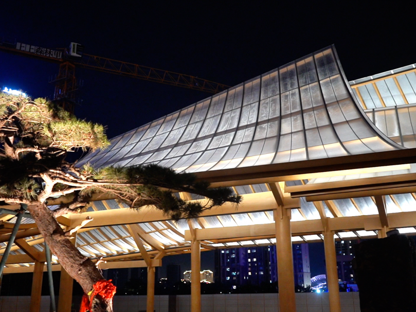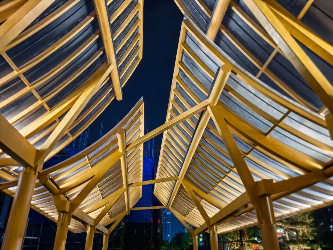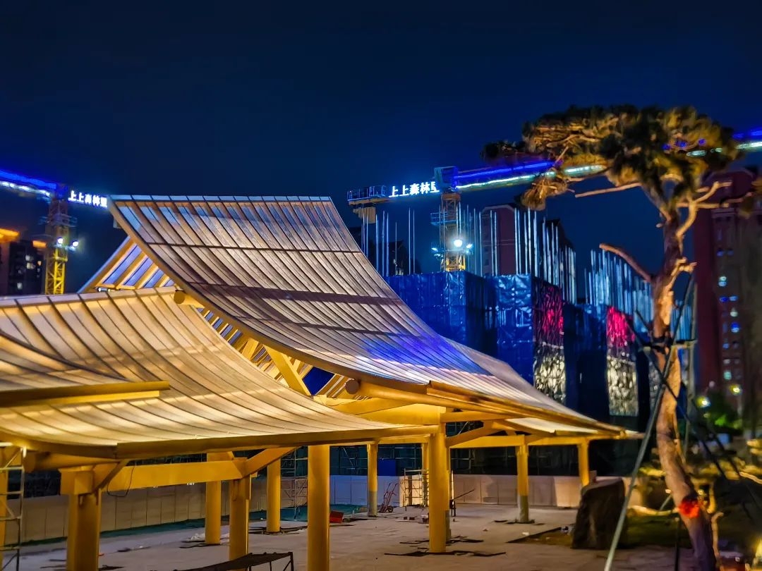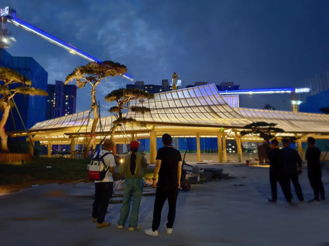 為還原設計理念,上上多次邀請山水比德設計師親臨現場,從方案落地到細節雕琢全程把控。6月下旬再度親臨指導燈光調試,以專業眼光調試每一處光影層次,讓建筑在晨曦暮色間自然流轉。