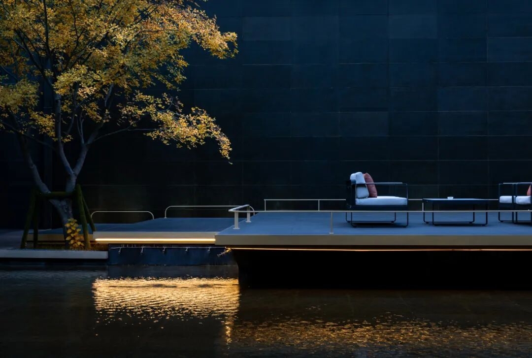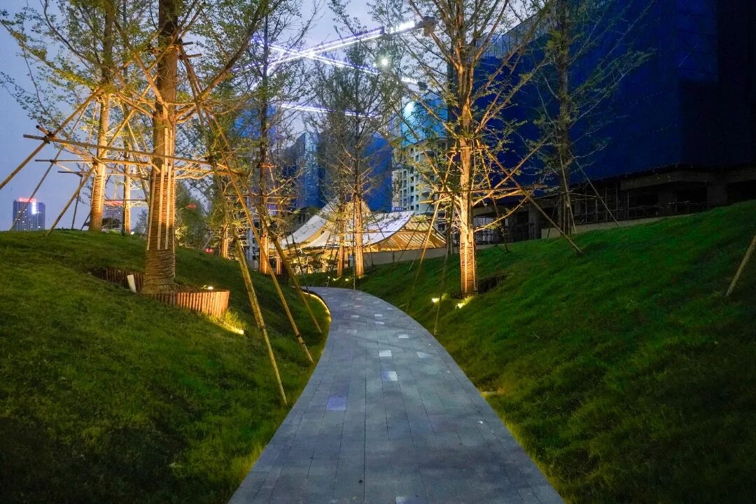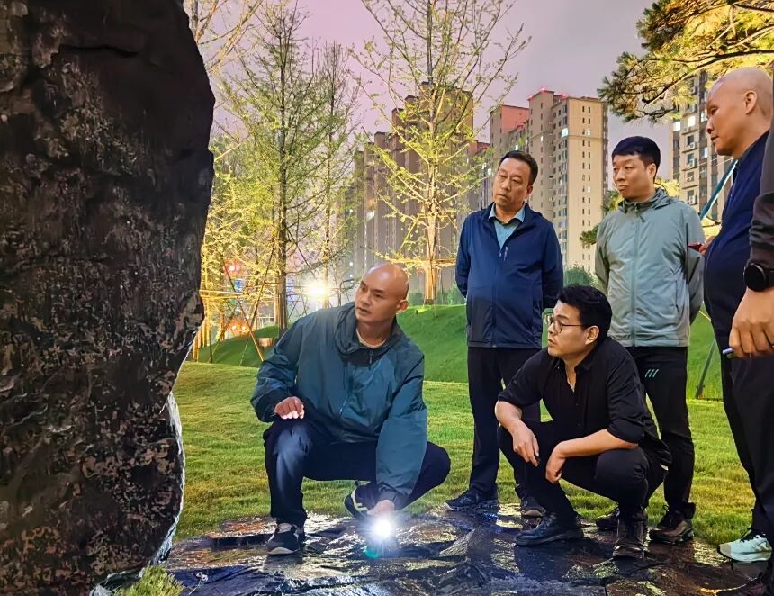 同時增加燈光的精準投射,打亮福石,清晰呈現其表面的獨特紋理,打破單一照明的平淡感,使整體景觀在夜色中更具靈動性。