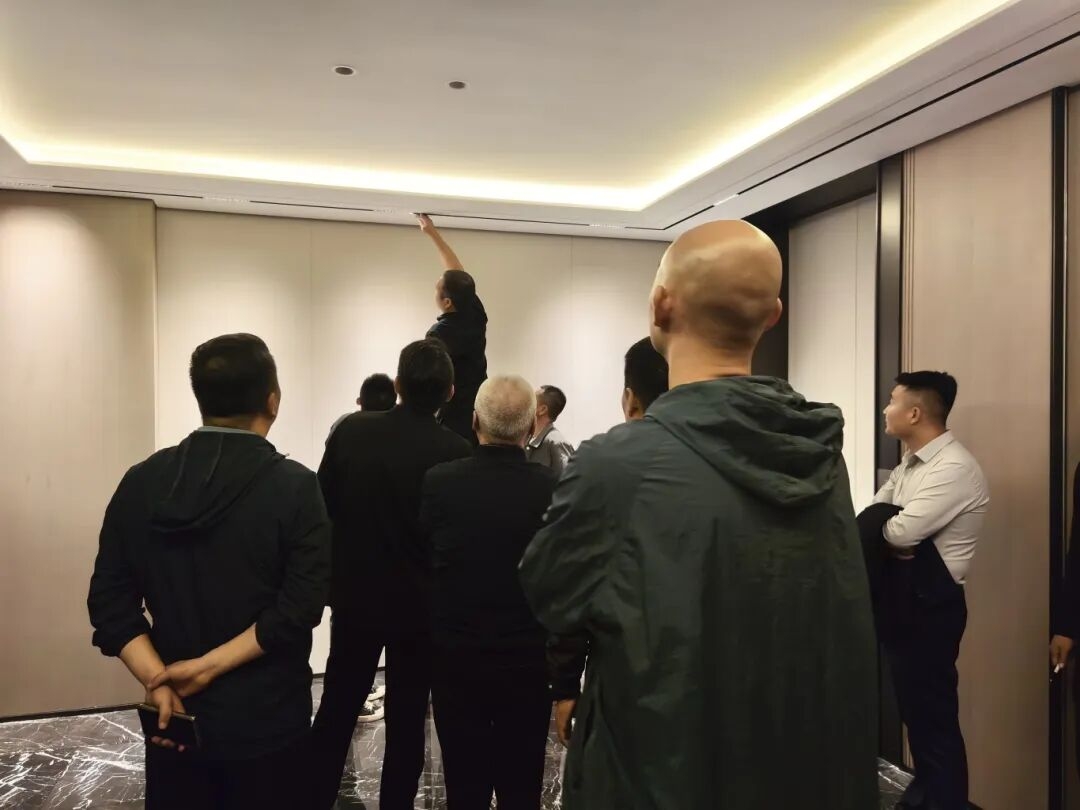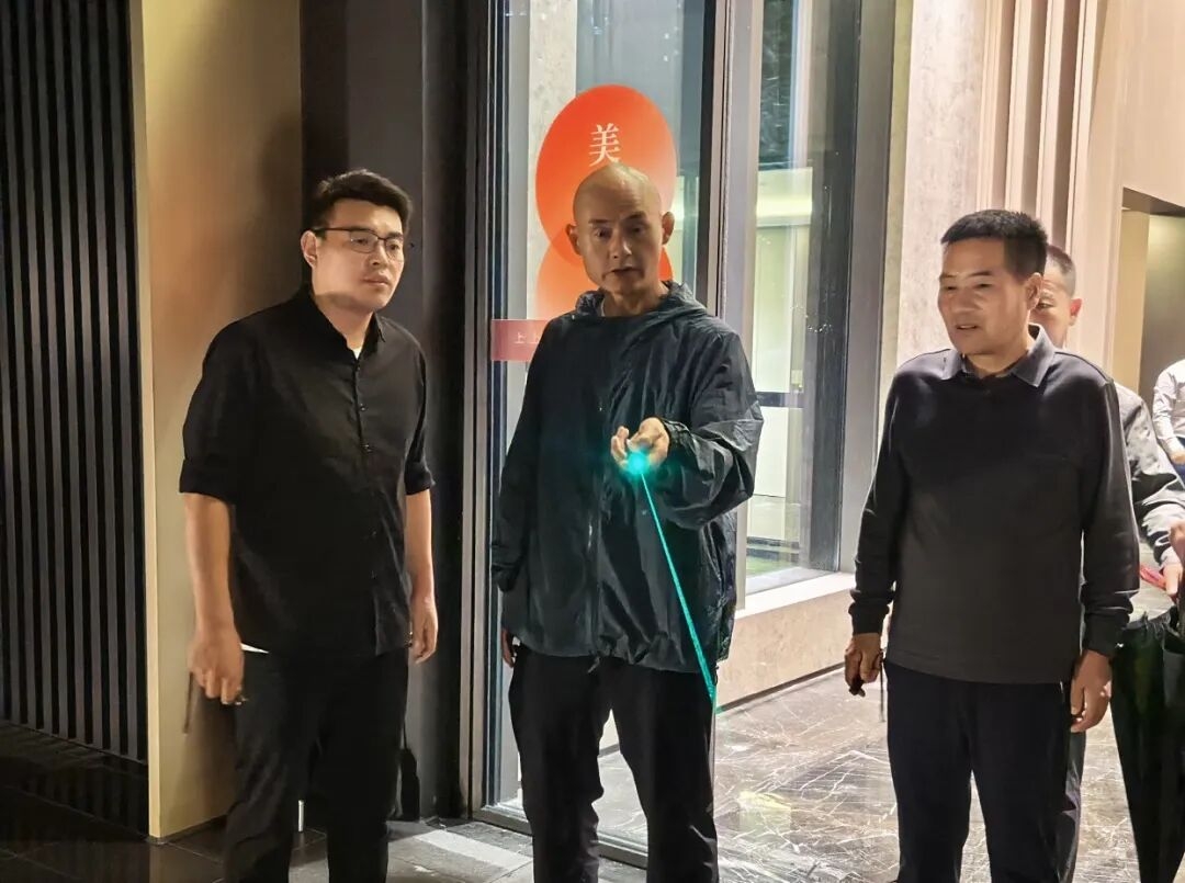 查看一樓大堂燈光時,他憑借多年經驗,結合大堂空間特點給出優化方向,上上團隊現場對燈的位置、投射范圍進行調整,通過光影對比,讓大堂的線條、對稱布局更顯精致,突顯空間高級感。