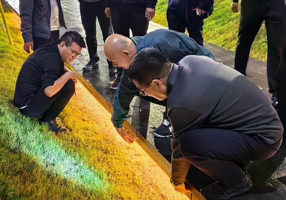 圍繞藝術大門燈光系統提出專業建議,他深入考量燈光在整體景觀效果的聯動,建議在當前燈光布局上增加草坪專用照明