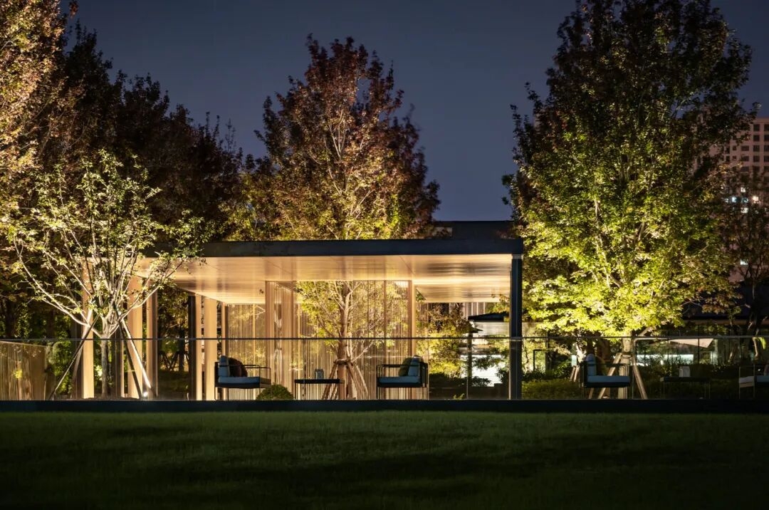園林是業主日后的主要活動區,周紅亮深入園區,結合樹冠形態及業主后期活動需求,從燈光位置、角度多番考量,打造安靜、私密、溫暖的氛圍,避免光線明顯分界,讓環境有陰影關系變化。上上團隊將所有調整細節逐一標記到位,確保后期精準落實。