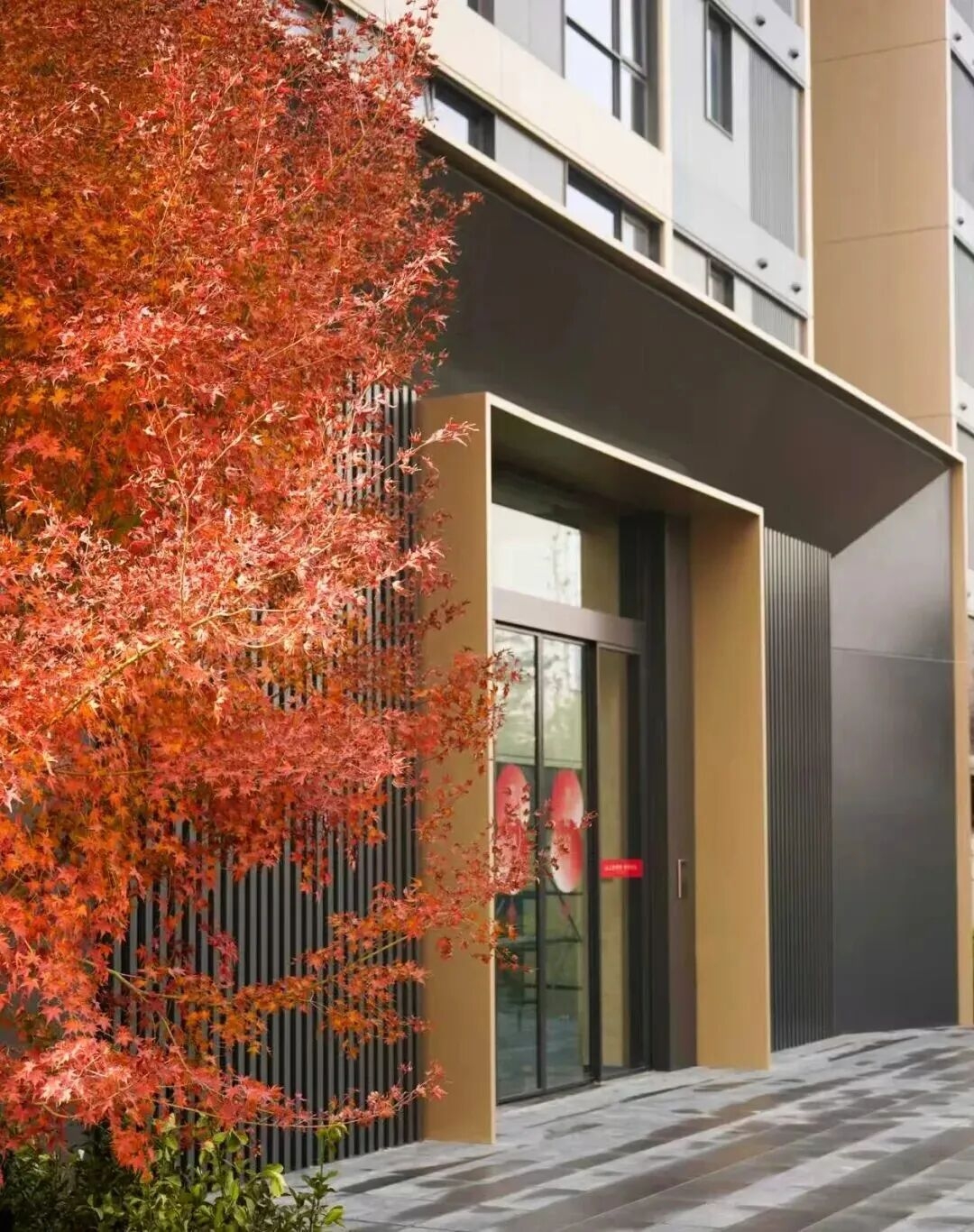 步入上上玫瑰園北門,威嚴莊重的感覺撲面而來。干掛石材紋理細膩有質感,與格柵構件搭配得恰到好處,開闊的大門尺度,進一步放大了空間的大氣與氣派。