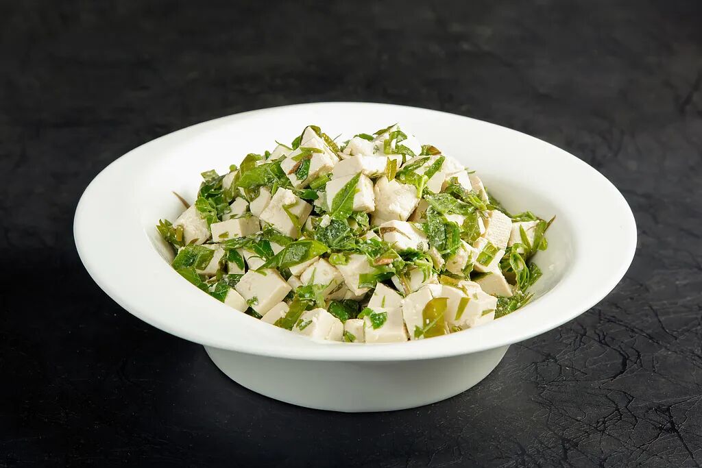 香椿拌豆腐材料:香椿100g,嫩豆腐1塊、鹽、香油少許。