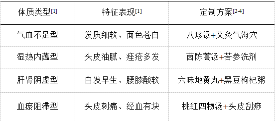 脫發與發質問題需基于中醫“整體觀念”與“辨證論治”原則分型施治。針對氣血不足、濕熱內蘊、肝腎陰虛、血瘀阻滯等常見證型,強調內外兼調:內以經典方劑調和氣血、清利濕熱、滋養肝腎或活血通絡,外則結合艾灸、藥浴、刮痧等療法以疏經通竅,輔以食療及生活方式干預,形成多層次干預體系。