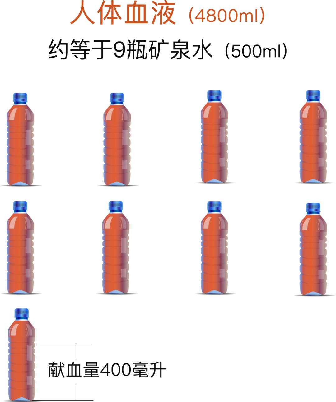一般每次獻血量(200毫升或400毫升),約為人體總血量的5%~10%。并不會損害健康。