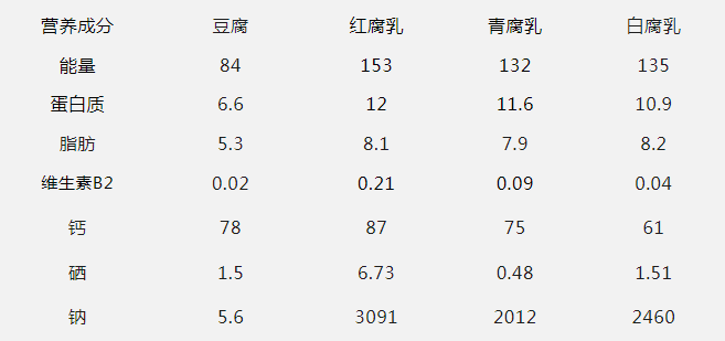豆腐與腐乳的主要營養對比
