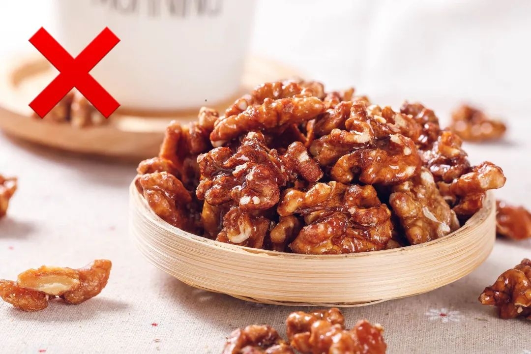 比如甜口的琥珀核桃仁、咸口的椒鹽核桃仁,這類核桃仁在加工過程中,添加了大量的油、糖、鹽,食用后反而對健康不利,會增加肥胖、齲齒、高血壓等疾病發生風險,反而掩蓋了核桃的益處,所以核桃還是吃原味的好。