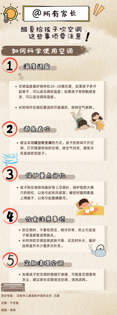 新華社沈陽8月1日電(記者于也童)炎炎夏日,空調成為家庭必備,但過度使用空調可能導致“空調病”。如何讓孩子健康“吹空調”,這些事項家長要留意,幫助孩子在享受清涼的同時遠離健康隱患。