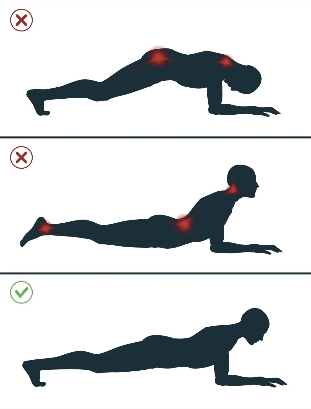 ?塌腰。?這是最常見的錯誤,腰部向下凹陷,會將所有壓力轉移到腰椎上,不僅無效,反而傷腰。