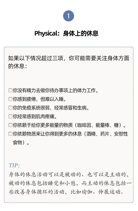 有內科醫生根據研究和臨床經驗,提出了7種類型的休息方式,幫助我們確定最需要哪一種。