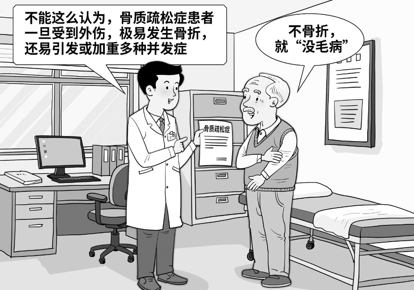 沈陽市骨科醫院關節外科主任醫師翟良全說,隨著病情進展,患者癥狀會加劇,出現負重能力下降、全身骨痛、駝背等脊柱變形問題。最危險的是發生“脆性骨折”,如打噴嚏、彎腰提物或站立高度摔倒發生骨折。