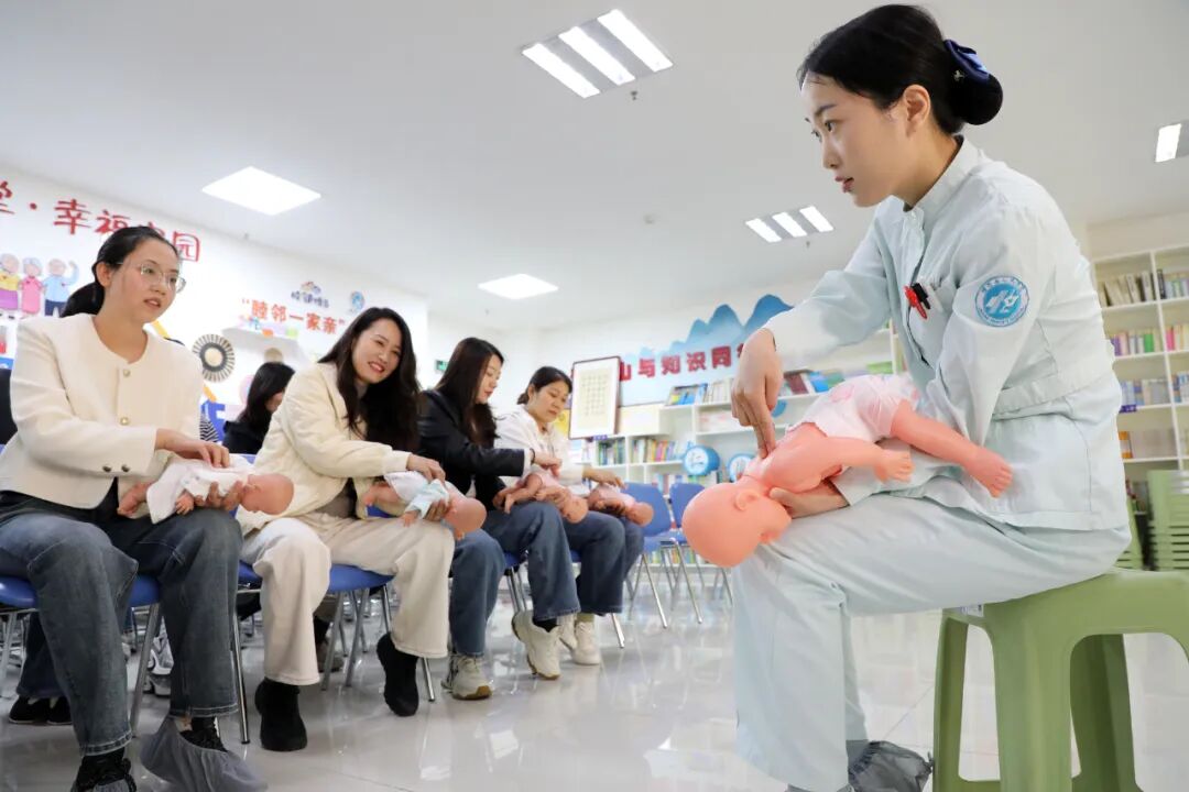 醫護人員為居民講解嬰兒健康保障知識。新華社發(陳彬攝)