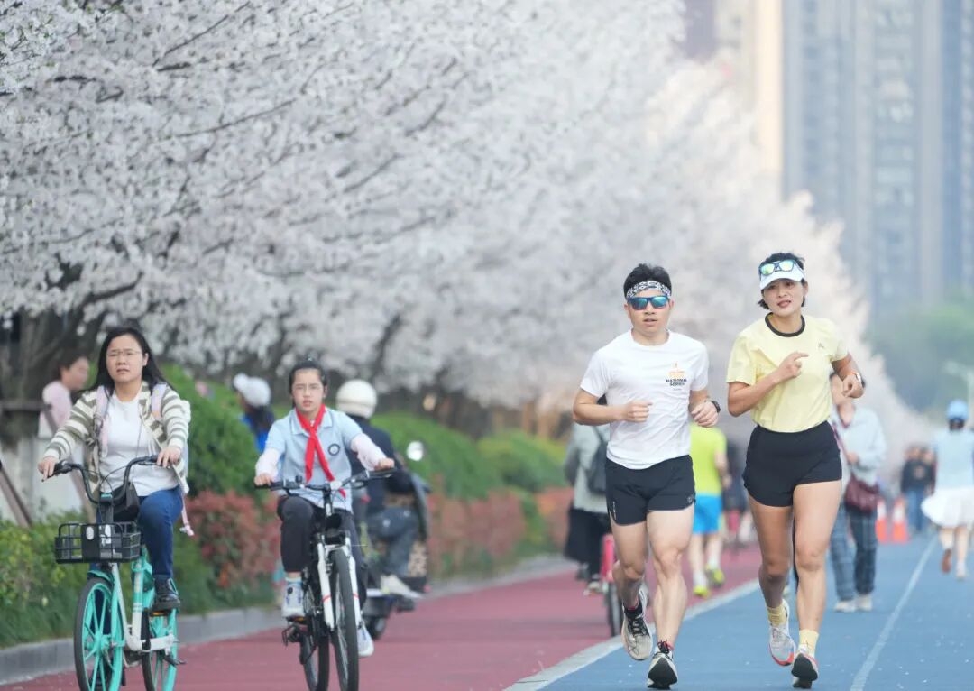 人們在跑步、騎行。新華社記者 翁忻旸 攝