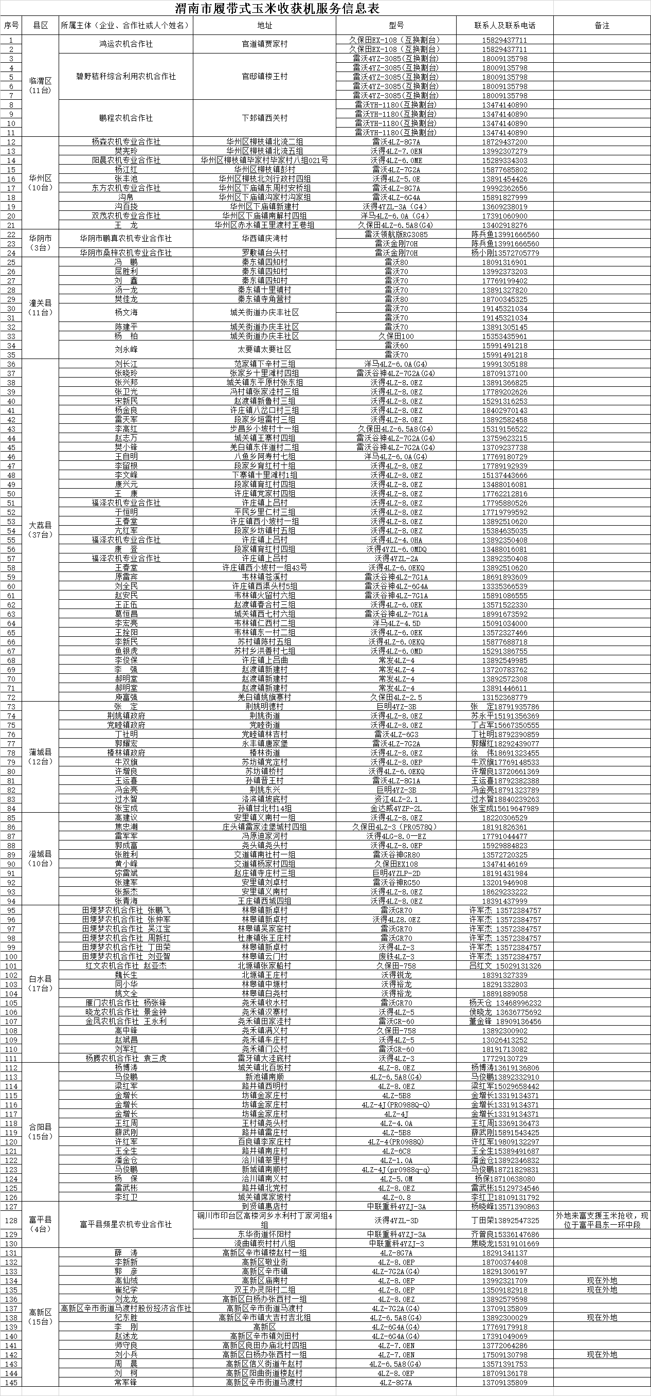 為積極應(yīng)對(duì)當(dāng)前降雨天氣,全力做好“三秋”期間玉米搶收工作,渭南市農(nóng)業(yè)農(nóng)村局現(xiàn)將全市“三秋”機(jī)收服務(wù)保障熱線和履帶式玉米收獲機(jī)服務(wù)信息公布如下: