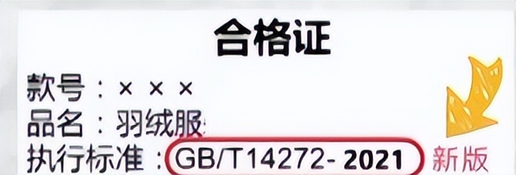 “一個標準”是指羽絨服合格證上的執行標準是否為新國標GB/T14272—2021。
