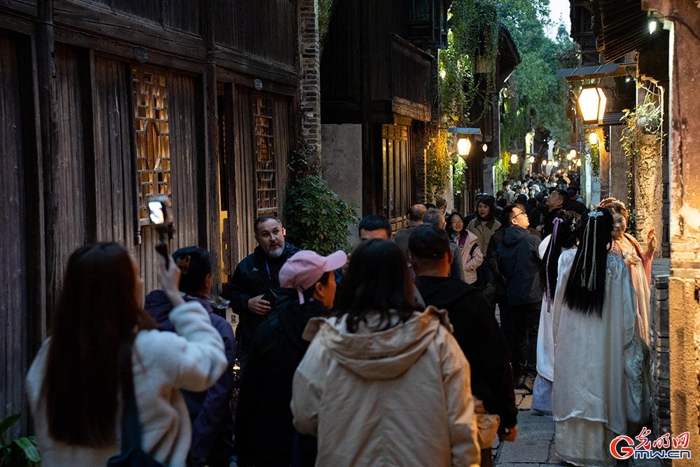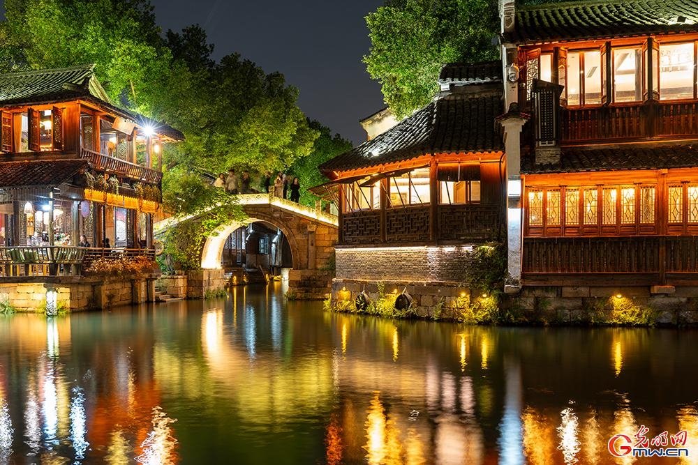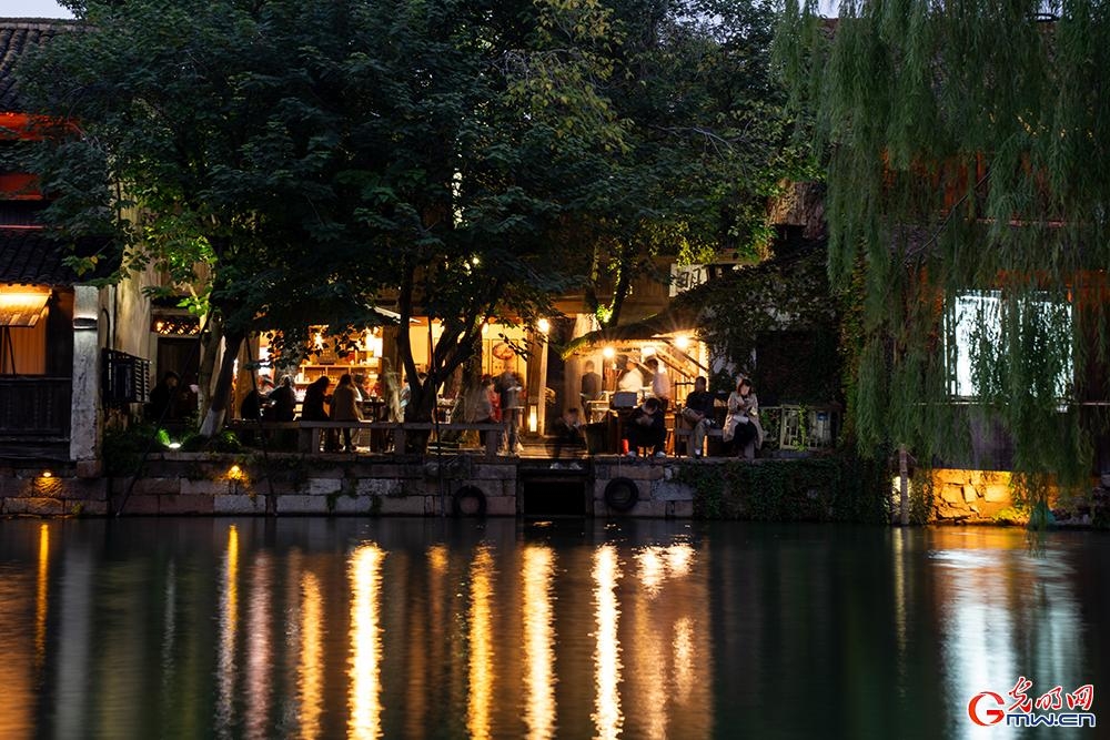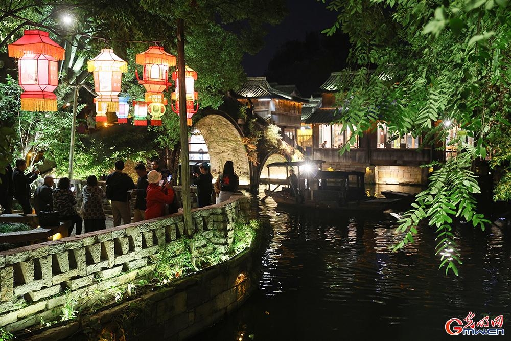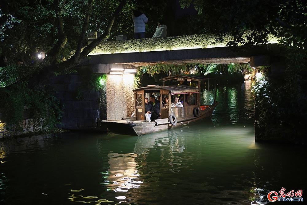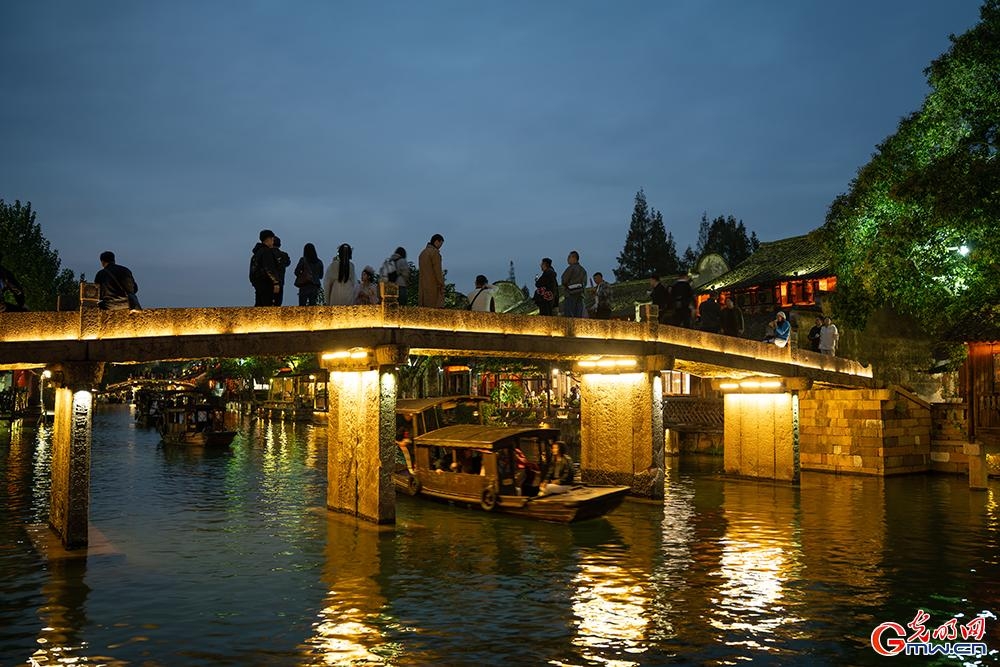 2025年11月4日,烏鎮(zhèn)西柵景區(qū)夜景。