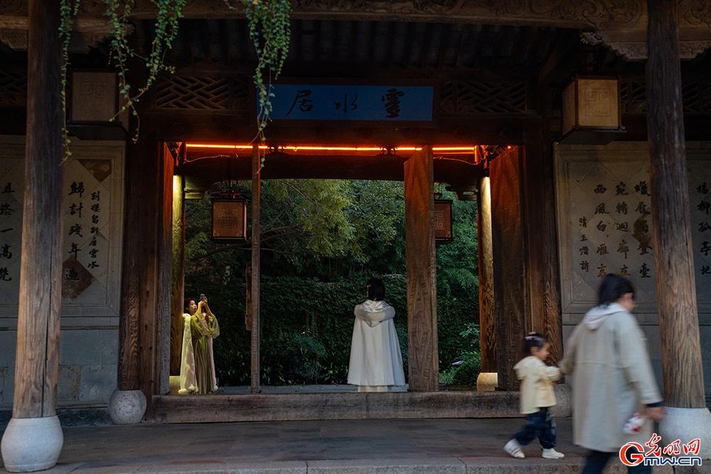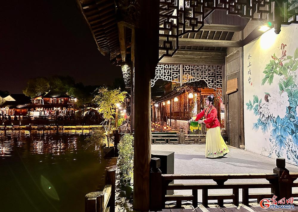 2025年11月4日,烏鎮(zhèn)西柵景區(qū)戲臺(tái)上正在進(jìn)行戲曲表演。來源:光明網(wǎng)