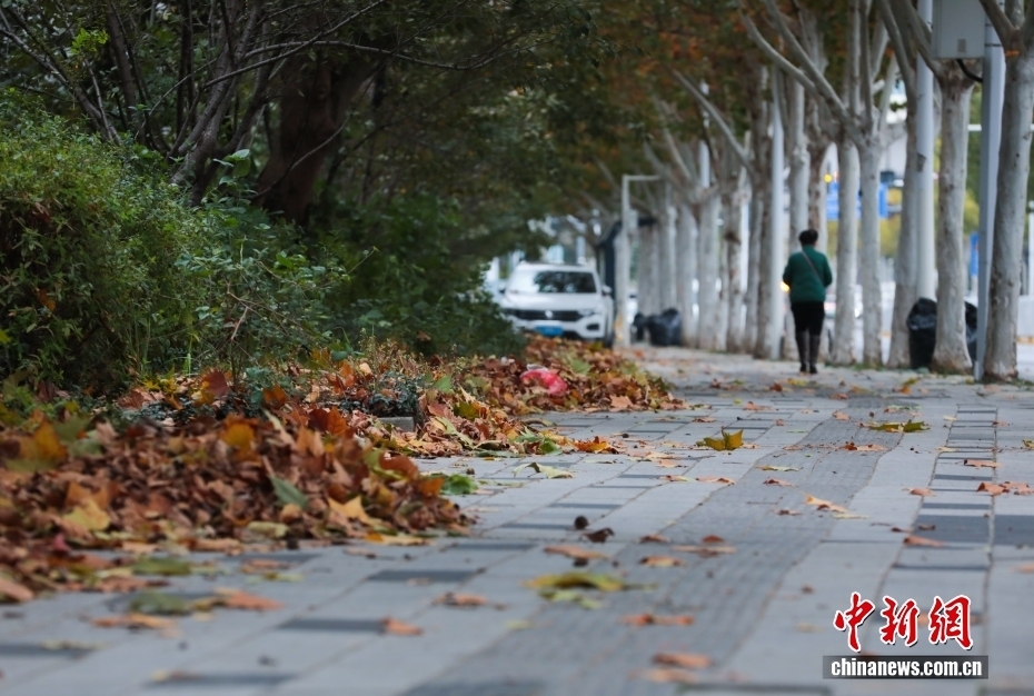 ??11月17日,受寒潮影響,湖北武漢遭遇大風降溫天氣。圖為市民在街頭出行。中新社記者 張暢 攝
