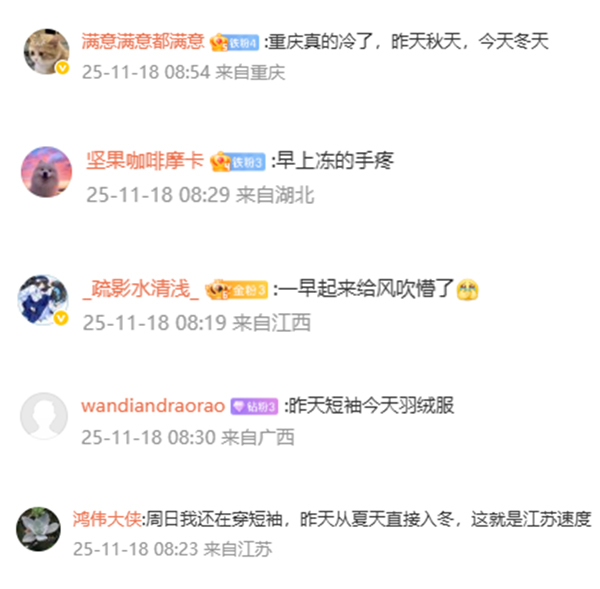 今天(11月18日),南方多地氣溫降至個位數(shù)。