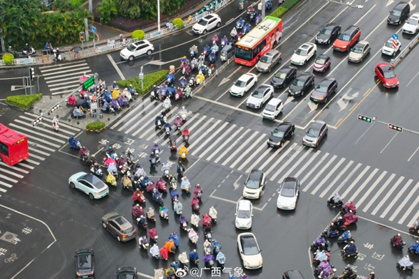 2025年11月18日早晨,南寧降雨降溫,寒涼上線。(來源:@廣西氣象)