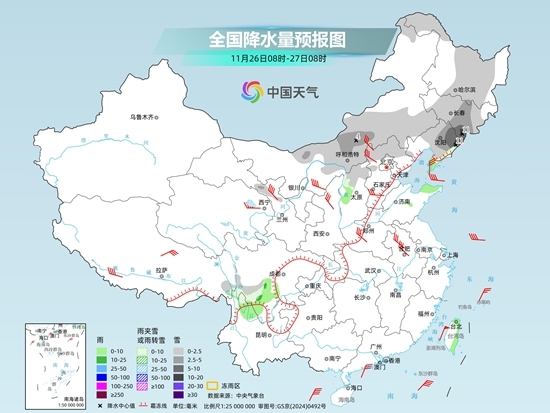 近期,冷空氣頻繁影響我國(guó),今天(11月26日)到12月初,還會(huì)有三股冷空氣先后來(lái)襲,各地氣溫變化節(jié)奏快,公眾請(qǐng)適時(shí)調(diào)整著裝,謹(jǐn)防感冒。降水方面,今天東北地區(qū)和華北北部降雪范圍較大,部分地區(qū)有中到大雪,明天我國(guó)降水范圍將明顯縮減。