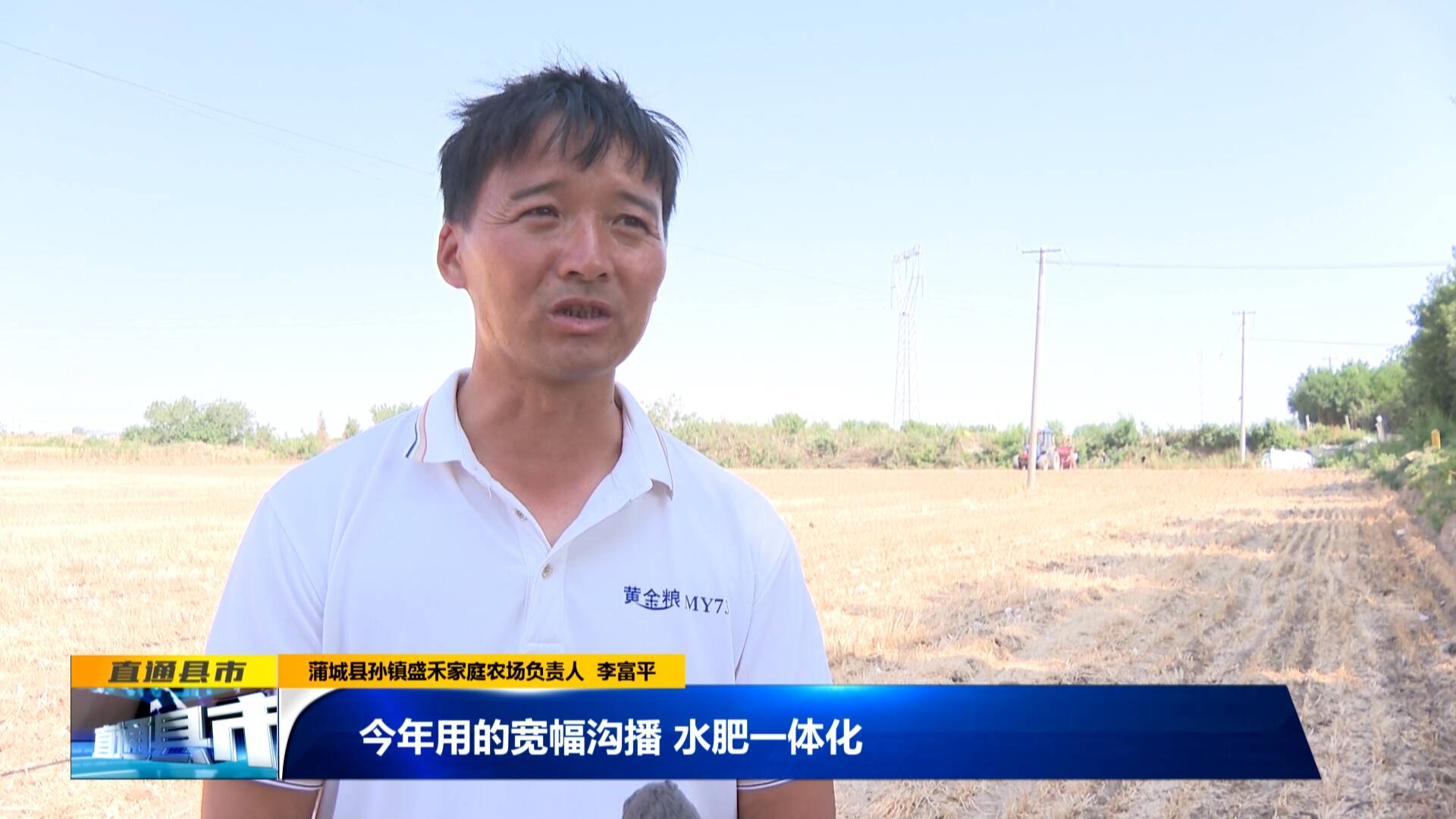 蒲城縣孫鎮盛禾家庭農場負責人 李富平:“今年用的寬幅溝播、水肥一體化,比去年沒有下降多少。新品種我今年種了幾十畝的鄭麥139表現還可以,每畝達到1200多斤,是個優質麥。”