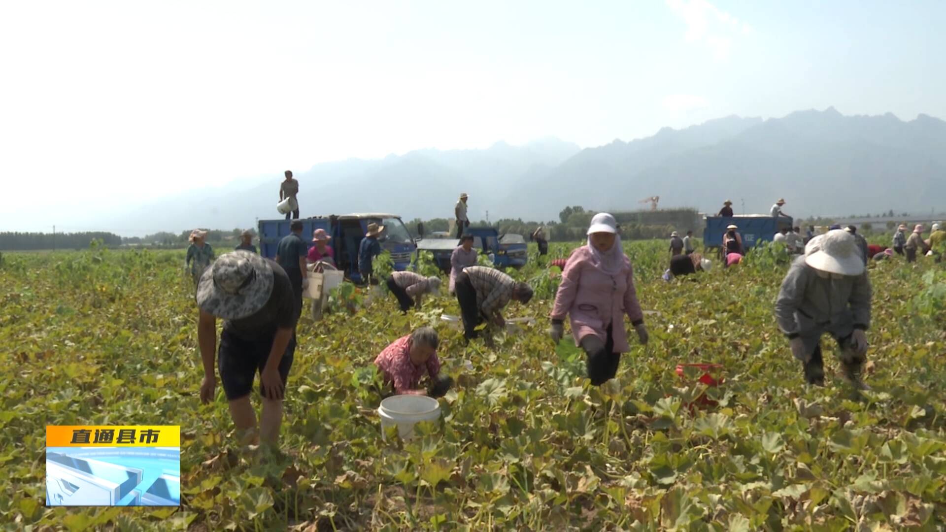 在華州區柳枝鎮東新莊村農戶翁曉娟家的南瓜地里,雇傭的工人師傅們正忙著采摘、裝車,拉運。