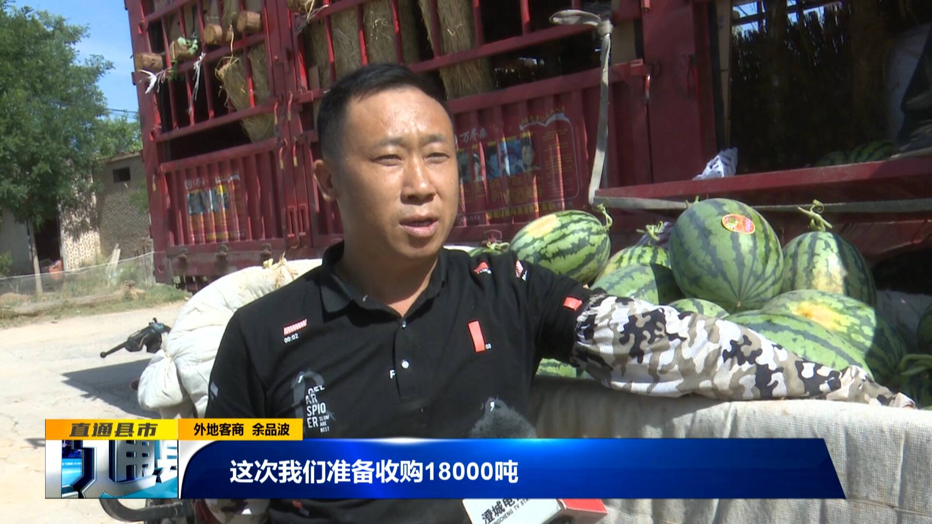 外地客商 余品波:“這里的西瓜品質特別好,口感清甜,在我們那邊市場(很)受歡迎。這次我們準備收購18000噸,后續還會繼續采購。”