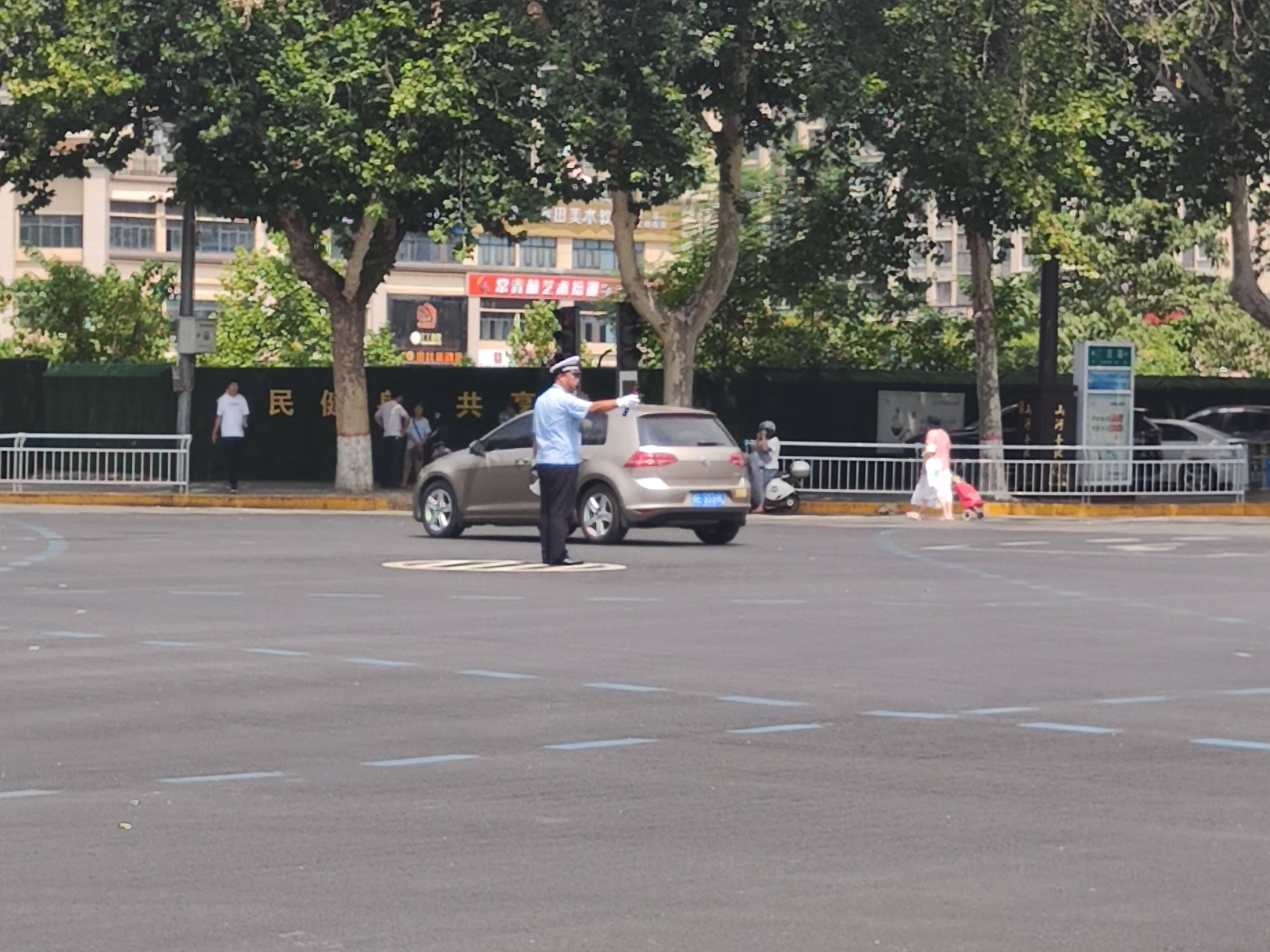 7月19日,渭南中心城區(qū)氣溫飆升至38攝氏度,地表溫度突破50度,陽光炙烤下的柏油路面蒸騰著熱浪,空氣仿佛凝固成一團火球。在前進路與朝陽大街交叉口,臨渭交警大隊二中隊民警岳蒲杰的身影早已定格在車流中——這個日均通行量超過3萬輛、全市最繁忙的路口之一,他已堅守了17年。