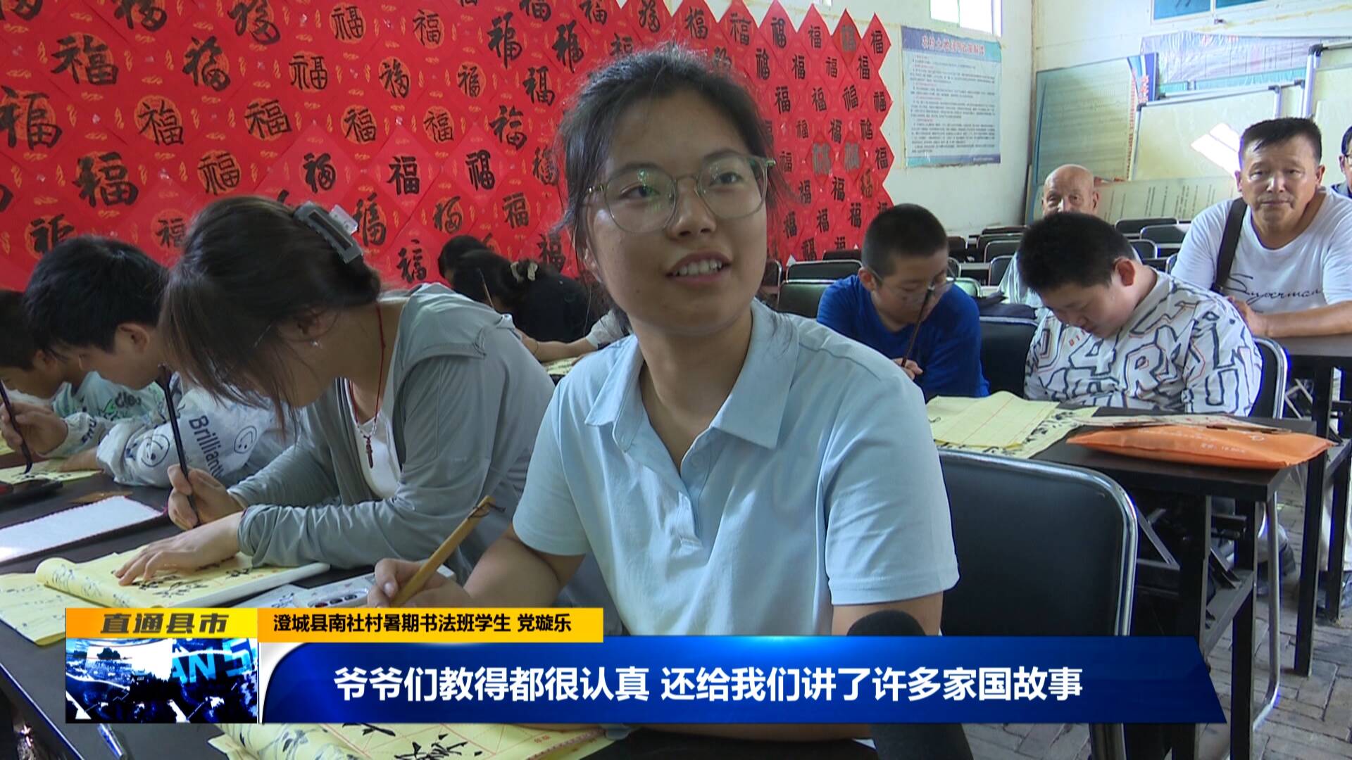 澄城縣南社村暑期書法班學生 黨璇樂:“爺爺們教得都很認真,還給我們講了許多家國故事,比如岳飛精忠報國。我現(xiàn)在的‘福’字寫得也越來越漂亮了。今年過節(jié),我也準備給家里寫對聯(lián),貼在門上。”
