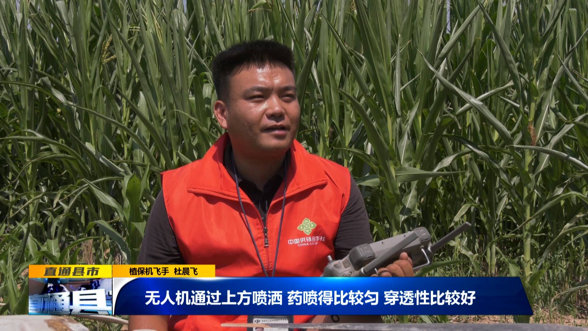 植保機飛手 杜晨飛:“無人機通過上方噴灑,藥噴得比較勻,穿透性比較好。靠無人機那個風(fēng)場能夠把藥量打到這個玉米的下部葉子上。”