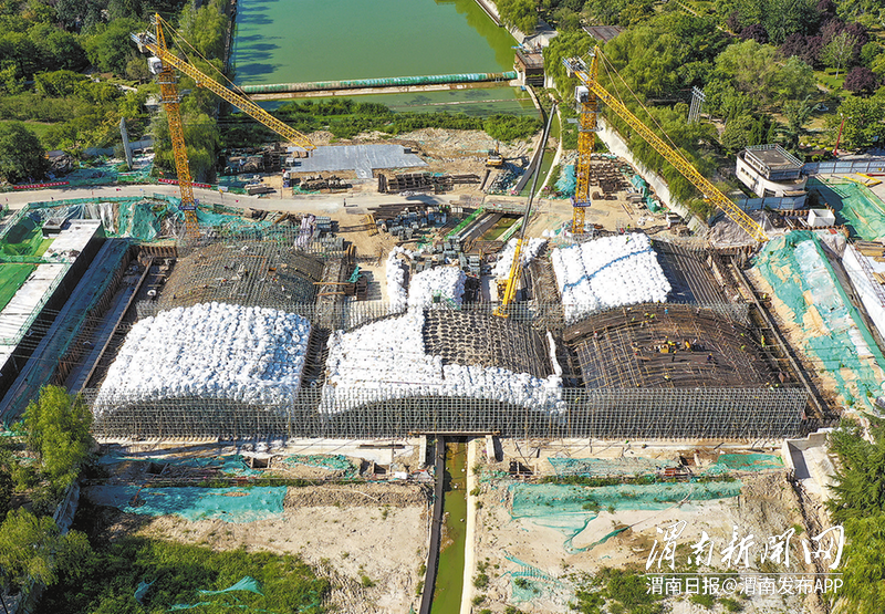 8月19日,記者航拍的臨渭區朝陽大街湭河橋建設現場。
