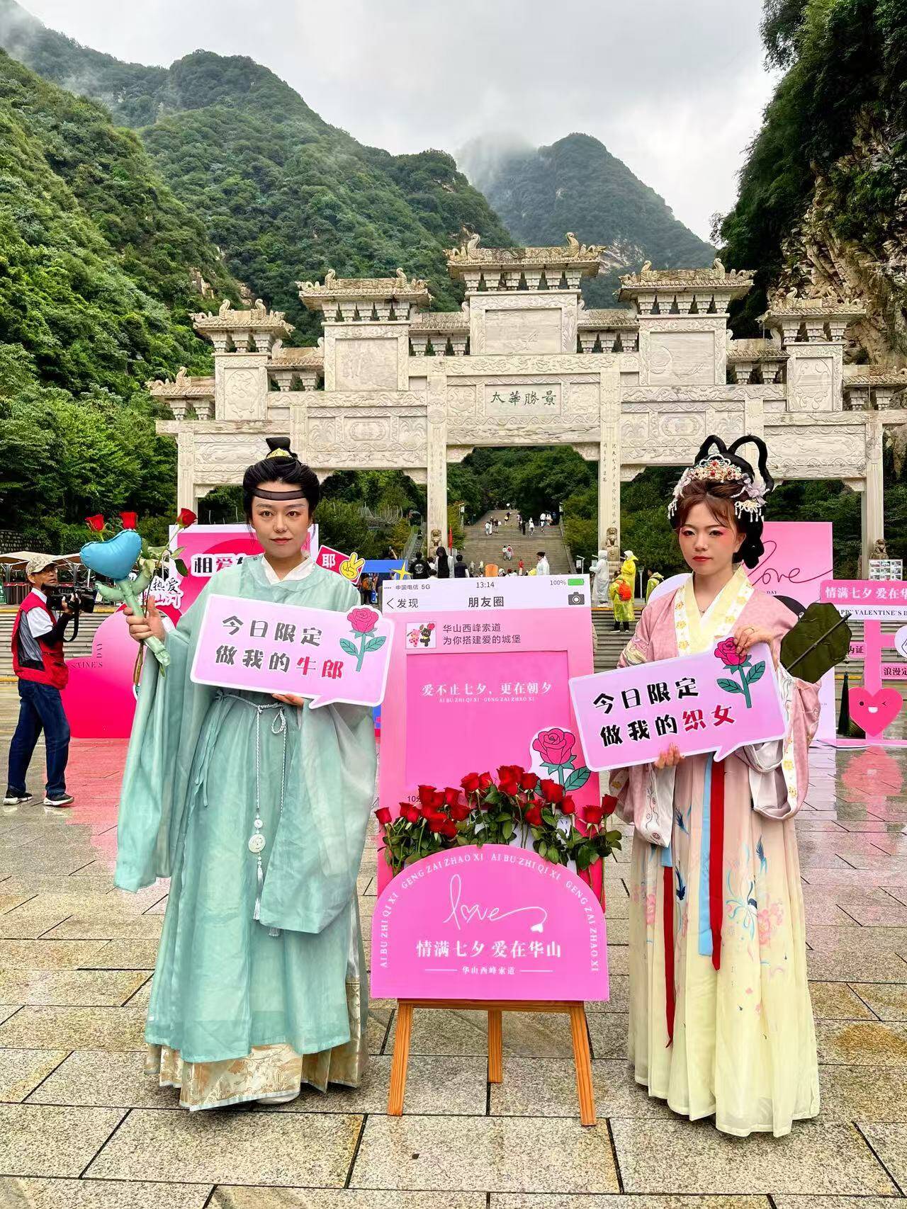華山西峰索道工作人員牛珊表示:“華山承載著人們對美好愛情的向往,我們希望通過活動,讓游客在賞景時感受傳統節日魅力,讓華山成為更多人愛情里的美好印記。”