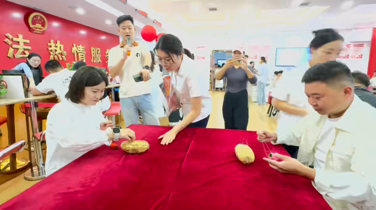 活動(dòng)中,福彩中心為新人們安排了趣味游戲“七巧穿針挑戰(zhàn)”,夫妻雙方派一人完成穿針任務(wù),參賽人需穿完7個(gè)針,計(jì)時(shí)從開始到成功穿完為止。現(xiàn)場(chǎng),加油聲,歡笑聲不絕于耳,讓本就喜慶的日子更是喜上添喜,福中增福,新人們也在歡聲笑語中完成了人生中最重要的時(shí)刻。福彩中心也根據(jù)游戲排名為新人們發(fā)放了價(jià)值100元、50元、30元的福彩刮刮樂,祝愿新人們好運(yùn)常在,并送上福彩盲袋。