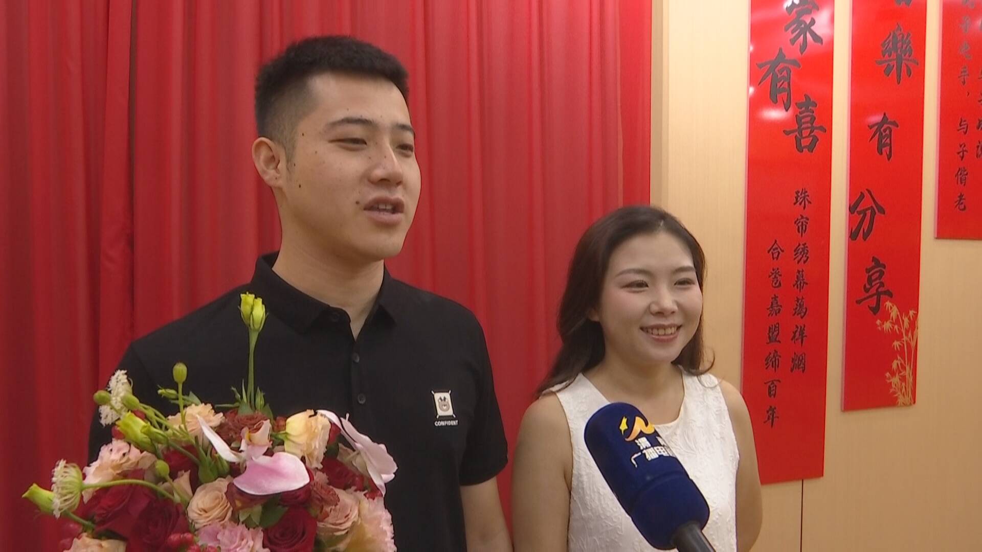 結(jié)婚登記新人高源:感覺今天(現(xiàn)場(chǎng))布置得非常好,在七夕這天給我們營造的氛圍非常好,我們今天領(lǐng)完證了非常開心,想把一生娶到的人娶到手了。