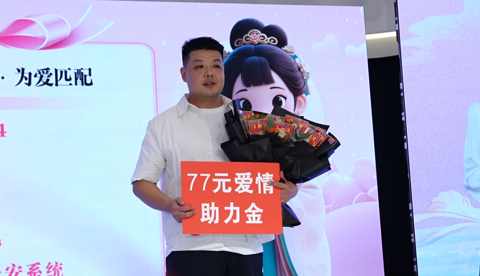 鵲橋相依,福彩傳情。活動現場被精心布置得溫馨而喜慶,處處洋溢著甜蜜與幸福的氣息。參與活動的嘉賓依次上臺介紹自己,尋找有緣人,工作人員為當日參與相親會的各位嘉賓送上特別的祝福和寓意美好的中國福利彩票花束。