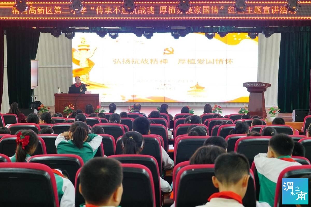 在高新區第二小學,軍休干部許新倉以“弘揚抗戰精神 厚植愛國情懷”為主題開展宣講,生動講述了在抗日戰爭時期,趙一曼、狼牙山五壯士、趙尚志、楊靖宇等無數英雄浴血奮戰、舍生保家衛國的感人故事。帶領現場師生追憶烽火歲月、弘揚偉大抗戰精神,讓紅色記憶在青少年心中慢慢沉淀、深深扎根,也讓熾熱的愛國情懷與濃厚的家國擔當,在孩子們的成長旅程中悄然萌芽、茁壯成長。