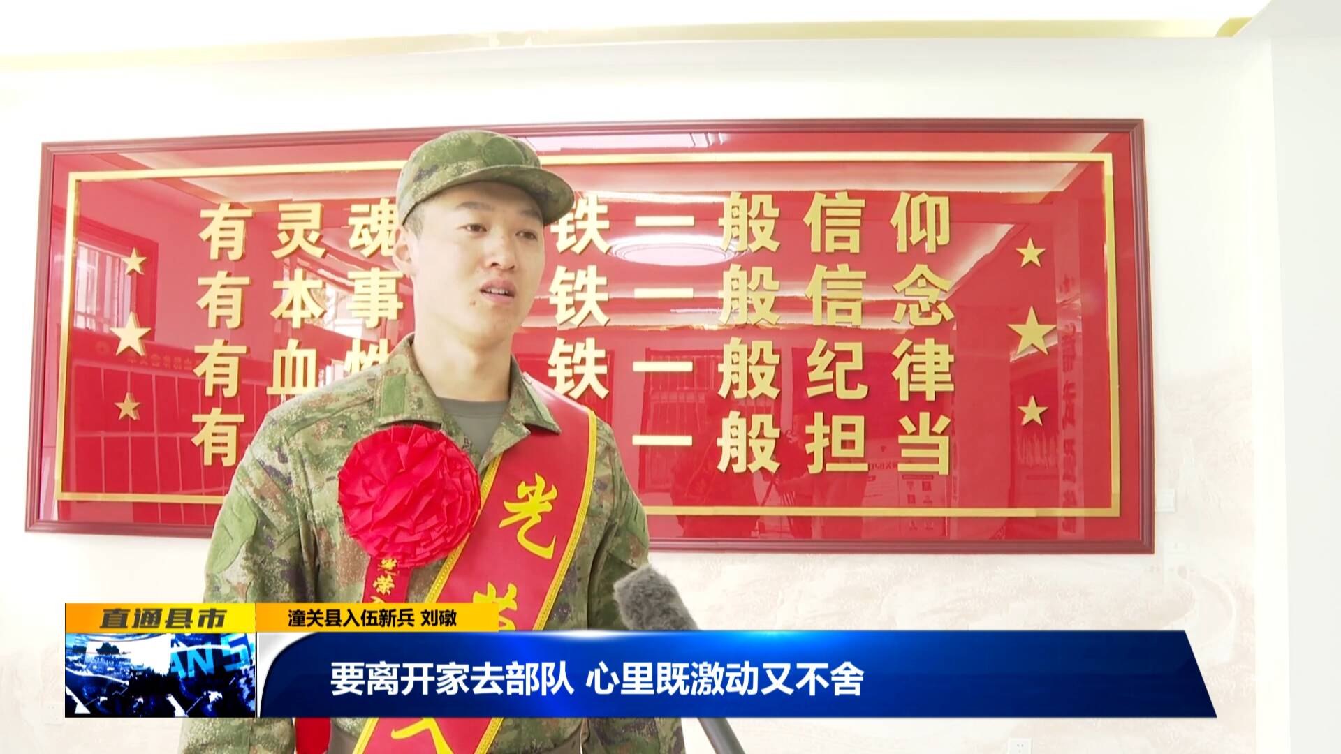 潼關縣入伍新兵 劉礅:“要離開家去部隊,心里既激動又不舍。從小我就崇拜軍人,現在我也能成為其中一員,特別光榮。爸媽,你們保重身體。到部隊我會努力,不怕吃苦,爭取早日成為一名優秀軍人。”