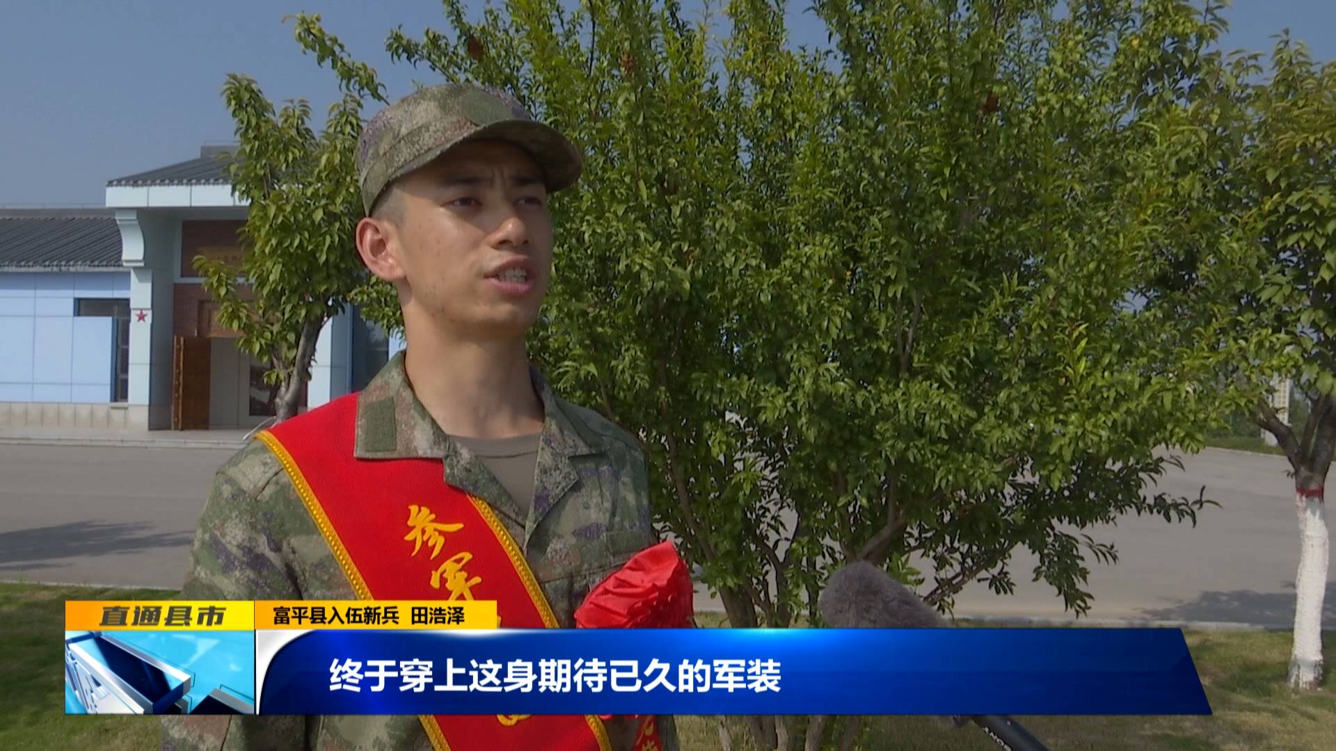 富平縣入伍新兵 田浩澤:“終于穿上這身期待已久的軍裝,心里感到無比自豪和高興,我將堅守從軍報國初心,踐行軍人誓言、爭當強軍標兵。”