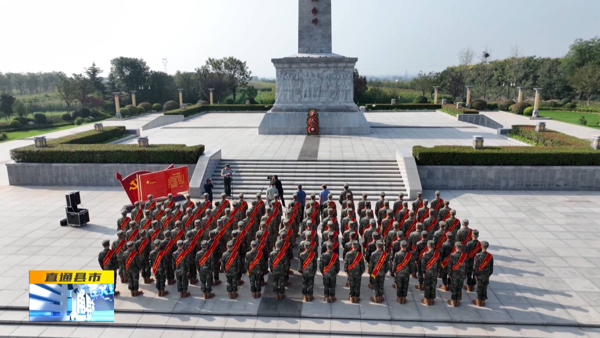 富平縣2025年下半年新兵出征誓師大會在八路軍120師抗日誓師紀念地舉行。入伍新兵身著迷彩、胸戴紅花,肩披“參軍報國、無上光榮”綬帶,在紀念碑前整齊列隊,接受革命洗禮。