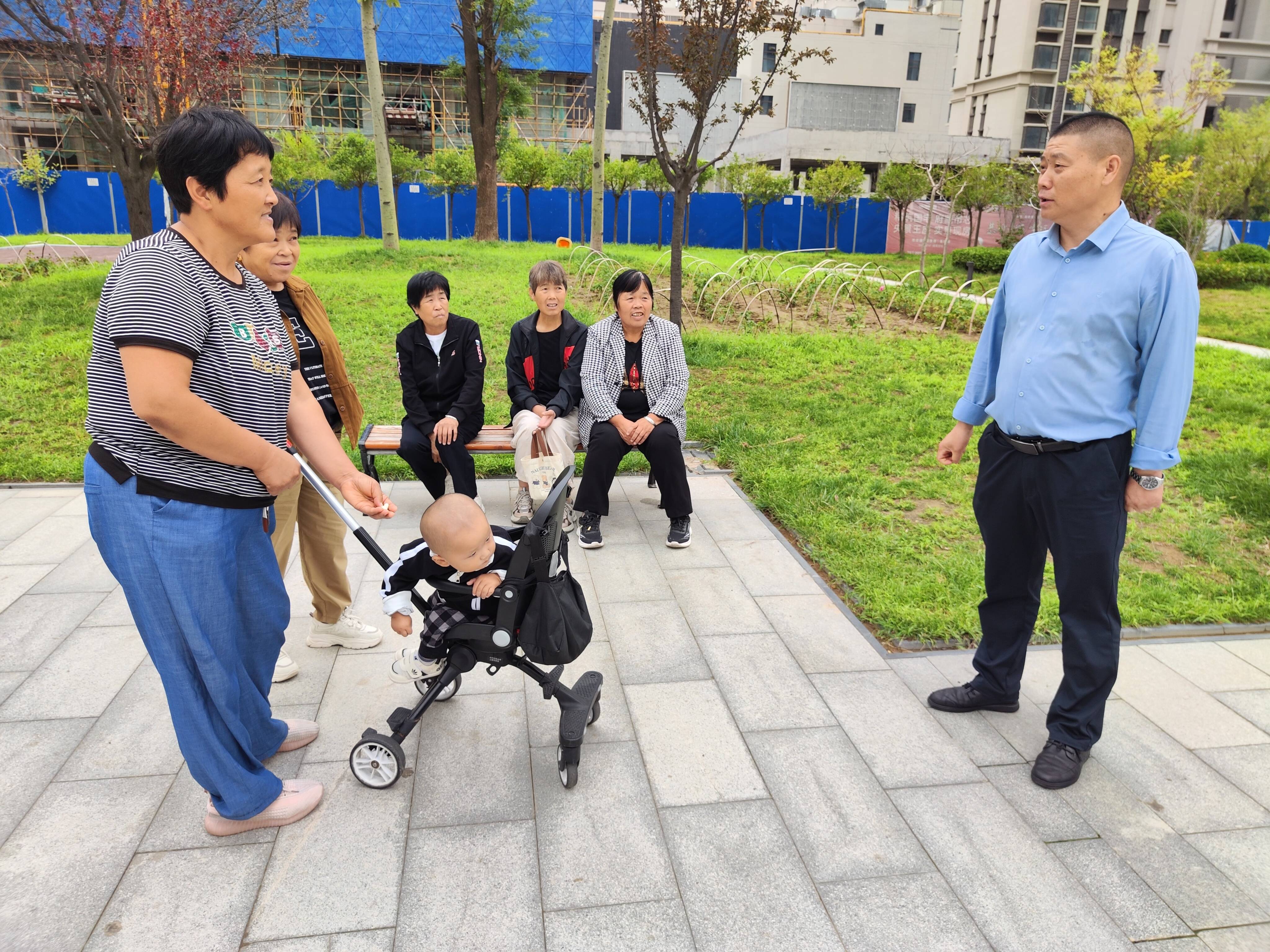 馮南京和小區(qū)居民在一起聊天